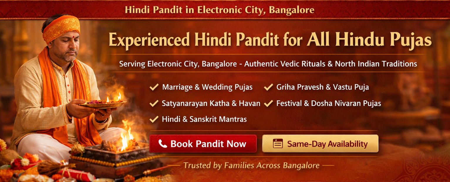For the past 15 years, Pandit Ji has been serving devotees across Bangalore, especially in Whitefield, Electronic City, and HSR Layout, becoming a familiar and reliable name for families seeking authentic North Indian pooja services.