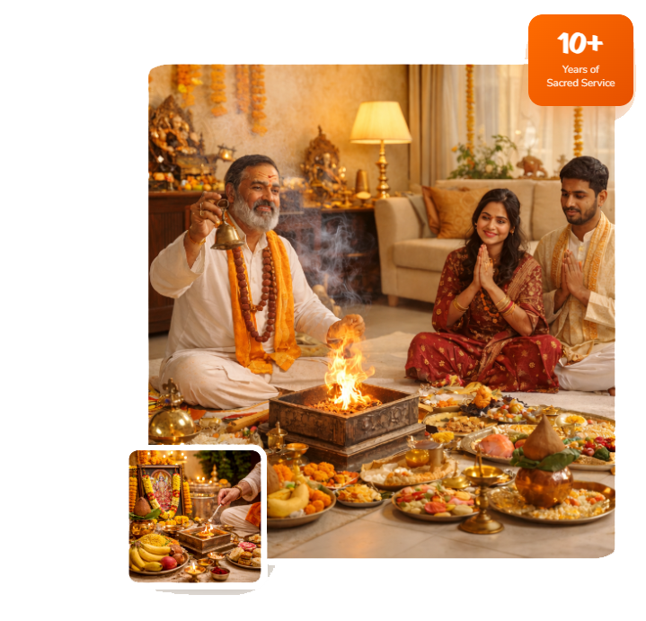 Our support team is available round the clock via WhatsApp to answer questions, guide your booking and offer post-puja assistance.